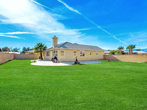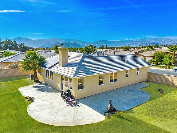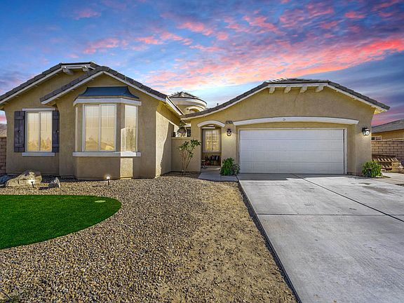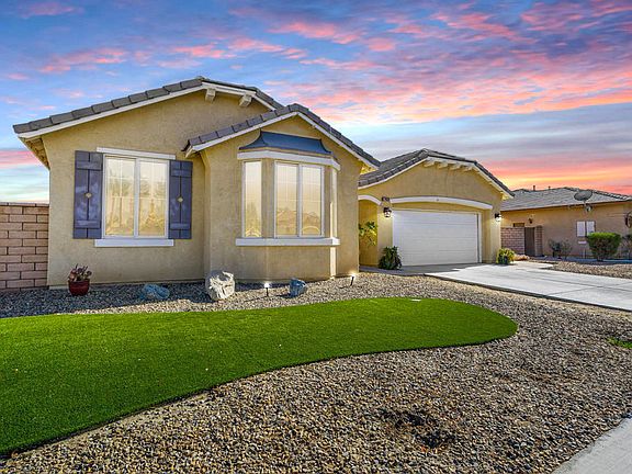 AMAZING PROPERTY! Located in the highly sought-after 'Florencia' section of Talavera. Offering nearly 1,900 square feet of luxurious living space, this beautifully updated home boasts 3 bedrooms, 2 bathrooms, 2-car garage on an oversized lot! Step inside an inviting foyer with abundant natural light, fresh paint, new laminate flooring, and breathtaking mountain views. The spacious kitchen features a breakfast bar with counter seating, upgraded appliances, ample cabinetry, and a cozy dining area with a gas fireplace. The home's thoughtful two-wing layout ensures privacy and an indoor laundry room adds convenience. The primary suite is a true retreat, offering a walk-in shower, soaking tub, dual sinks, private bathroom, and a large walk-in closet. The guest bathroom includes a shower-tub combination, while the front bedroom highlights a charming bay window ideal as a window seat, reading nook, or decorative display area. The expansive backyard boasts stunning panoramic mountain views, with a blend of concrete and grassy areas perfect for relaxing, entertaining, or customizing to suit your needs. Additional highlights include affordable leased solar panels for enhanced energy efficiency. Talavera is one of North Indio's rare low-HOA communities, featuring security, parks, and BBQ areas to enjoy. Close proximity to top rated schools, world-class attractions like Coachella and Stagecoach Festivals, Indian Wells Tennis Garden, Acrisure Arena, golf & casinos. Schedule a tour today!