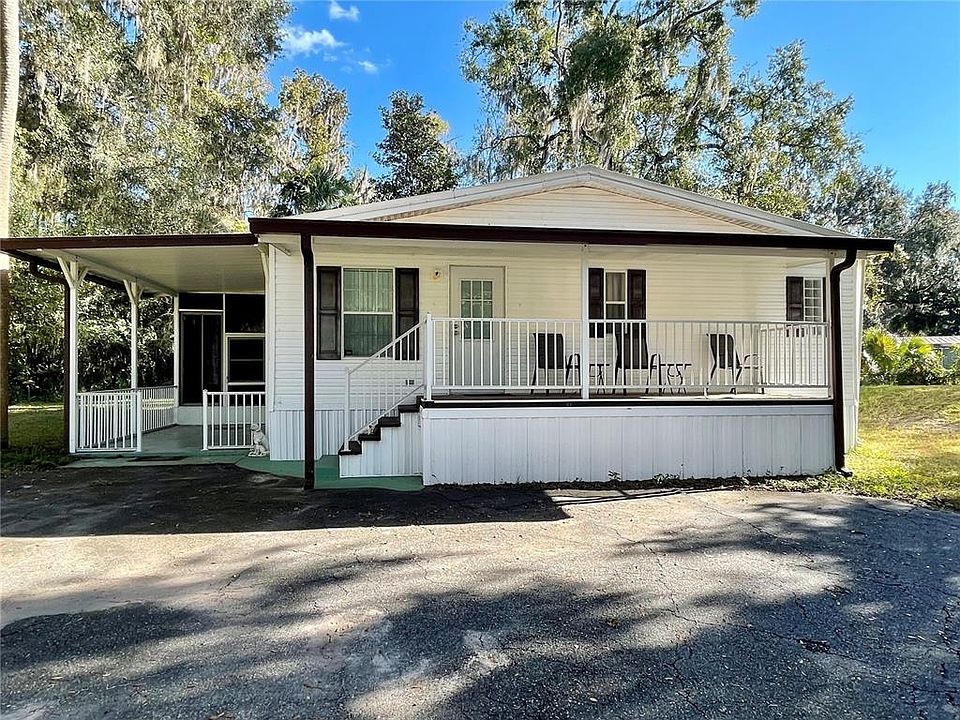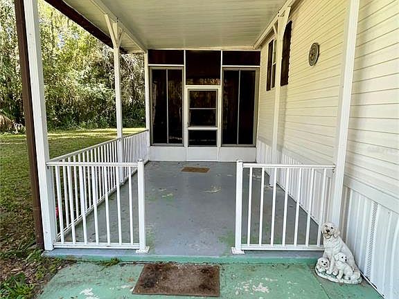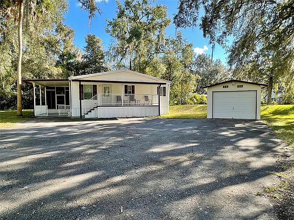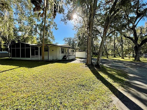 This property includes the vacant lot next door on the east side of home which is .23 of an acre, which makes this property right at 1/2 acre. Home is move in ready, built 2004 with 1440 heated sf... high and cathedral ceilings... Walk in the front door off the porch, you will find the breakfast room which includes a pantry and inside laundry closet, then you walk into the large kitchen with ample amount of cabinetry... large great room area with a dining space... split bedrooms, Primary suite is on the front end of the home, which includes a large walk-in closet, and a huge on-suite bath area with a walk-in shower AND a garden tub. The 2nd bedroom is on the other side of home, which includes a walk-in closet and the 3rd bedroom is just across the hall next to the guest bathroom. Home features on the west side of the home a screen room with vinyl windows, AND a covered lanai area AND a detached garage with workshop 12x24. Roof - 2022 and AC is approx 2015... Road is a dead-end road, so less traffic. Property is less than 1/2 mile to Lake Panasoffkee. There is a vacant lot across the street for sale as well from the same owner, and lot on the west side is wooded. Home has a golf cart and riding lawnmower witch could be negotiated depending on offer.