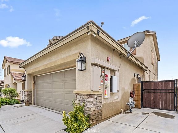 This cute 3 bedroom 2 bath home has a so many nice features. Here are just a few: Front yard all landscaped, extended side driveway next to garage for additional parking, Retaining wall front yard, nice paved court yard next to porch, wrought iron gate on both sides of property, Paved walkway that leads to back yard and large storage shed with electricity 6.5' x 14' x 8'. Also gated dog run, right side of property has had extra cement added and a walk way that leads all the way to the back yard where you will enjoy the sitting area with natural gas round fire pit, decorative planter wall on west side of house and another storage shed with electricity, Decorative bistro lights with separate power source, very nice patio cover along the entire back of the house, canned lighting for the evening, and 2 ceiling fans with remote, Samsung smart TV stays with patio, misters on perimeter of the patio cover, AC ductless mini split in the garage (you can heat or cool the garage) House came with 6 solar panels leased, seller added 10 more additional panels 3.2 kilowatt system with tesla battery back up, new system will be paid off at the close of escrow, buyer to assume lease for the 6 solar panales that came with the house, built in cabinets living room, under lighting under kitchen cabinets, extra storage racks in garage.