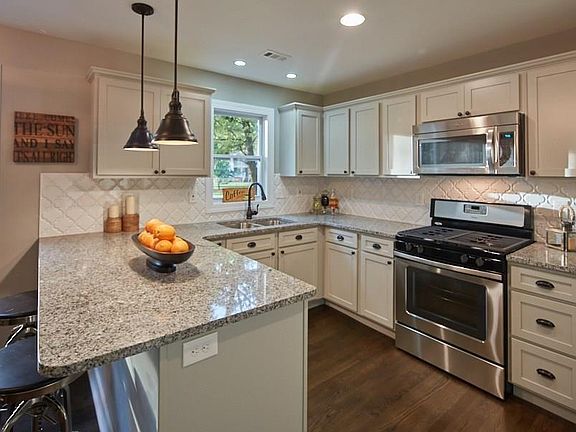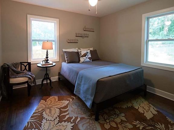 Stunning renovated 2-bedroom, 1-bath cottage in Decatur, just 3.5 miles from downtown and close to East Lake and Kirkwood. Features a designer kitchen with light gray cabinets, granite countertops, a stylish backsplash, and a breakfast bar. The marble bath offers a frameless glass shower with a built-in bench. Full-size laundry in the mudroom, plus a stainless steel refrigerator and high-efficiency washer and dryer included. Situated on a spacious, shaded corner lot with a fenced yard perfect for pets. Thoughtful updates throughout include windows, insulation, AC, electrical, plumbing, a pre-wired alarm system, and wall-mounted TVs. Don't miss this one!