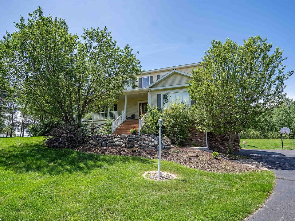 Discover unparalleled comfort and elegance in this exquisite 4-bedroom, 5-bathroom home nestled on 4.81 acres of serene landscape in Hermantown. Boasting a stunning setting with privacy and outdoor amenities, this property is a DREAM RETREAT!! AND AS A HUGE BONUS THIS SELLER INVESTED IN THE FUTURE BY INSTALLING 60 SOLAR PANELS IN FALL OF 2023! This will save the new buyers thousands each year!!The front wrap around deck welcomes you to step inside and feel the luxury of this home with its sunny cathedral entry. Dream kitchen boasts loads of granite, cherry cabinetry with rolls outs and pantry space, induction cooktop w/ hood, breakfast bar, center island and more. Off the kitchen is the family room that has so much natural light and a pellet stove to cozy it up in the winter months ahead. This room leads to the fun four-season room that has wall to wall windows and 2 doors to the private back area that is a great outdoor entertaining space! The living room has a cathedral ceiling and gas fireplace and the huge office that can easily house 2 or more workspaces is located right off the front entry. Master bedroom is super spacious with ginormous walk in closet and an updated bath that includes jetted tub and tiled walk in shower. Upper level has 3 well sized bedrooms, laundry room, and 2 more updated bathrooms. Lower level has mud room off the garage, another updated 3/4 bath, wet bar and fabulous 44 x 19 home theater and game room. Exterior has attached 2 car garage and a detached 2 car garage, shed, garden and loads of outdoor play space. Secluded yet conveniently located in Hermantown, offering privacy without sacrificing proximity to amenities. Don’t miss out on this opportunity to make this charming house your new home!