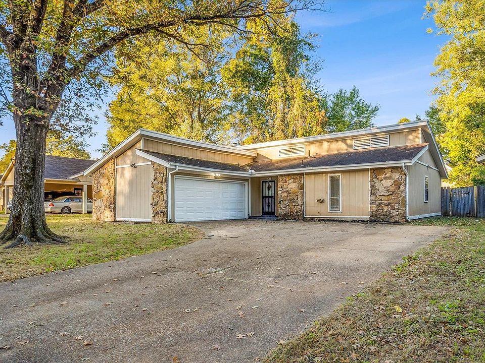 This 3 bedroom, 2 bath home in southeast Memphis is ideal for an owner-occupant or an investor looking for a good return on investment. The primary bedroom has an en-suite bathroom. Two other bedrooms are also on the ground level all with new carpet and paint. Large living room with hardwood floors and a fireplace at one end enclosed by stone. Sliding glass door off the living room for easy access to patio and fenced backyard. Nice-sized kitchen with a spacious eat-in area and laundry room on one wall. Convenient location to schools, shopping, and many popular restaurants. This house is being sold "As Is' and seller is offering $2500 to go towards repairs or closing expenses. Easy to show.