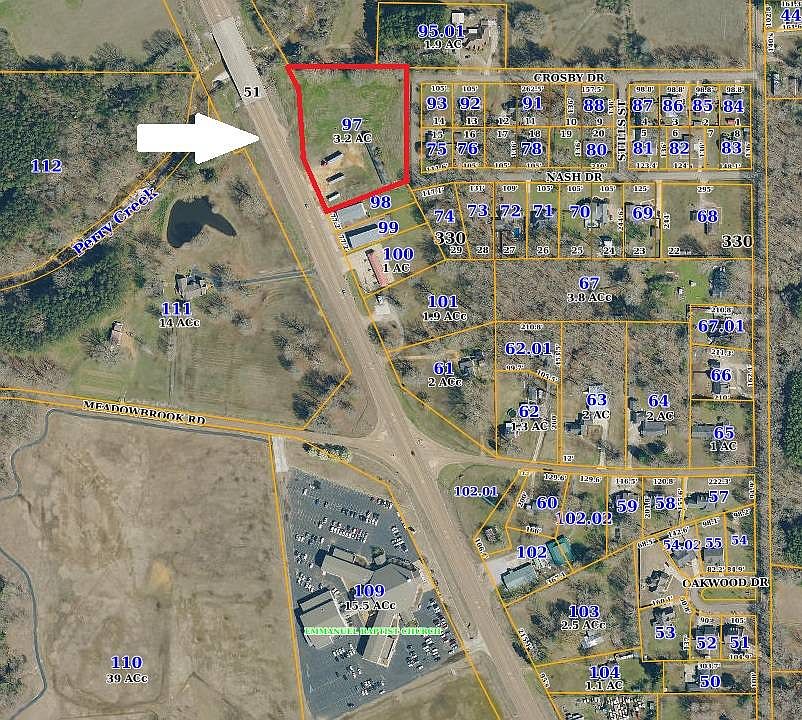 "High-visibility 3.2± acre commercial tract on US 51/Commerce Street in Grenada with existing improvements, strong daily traffic, and flexible commercial possibilities-ideal for retail, restaurant, office, or service use (zoning and use to be verified by buyer)."