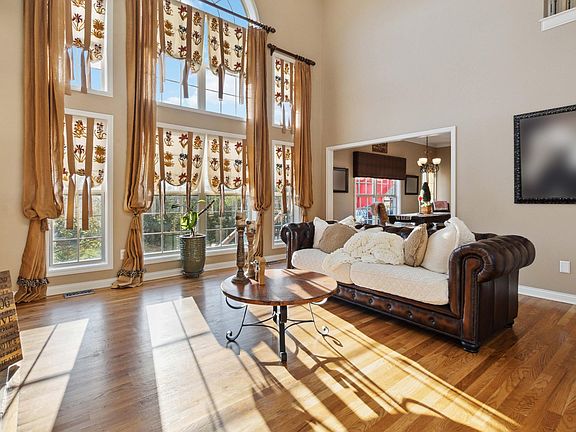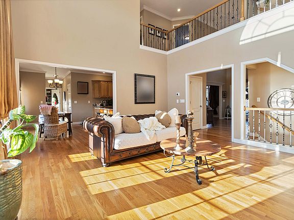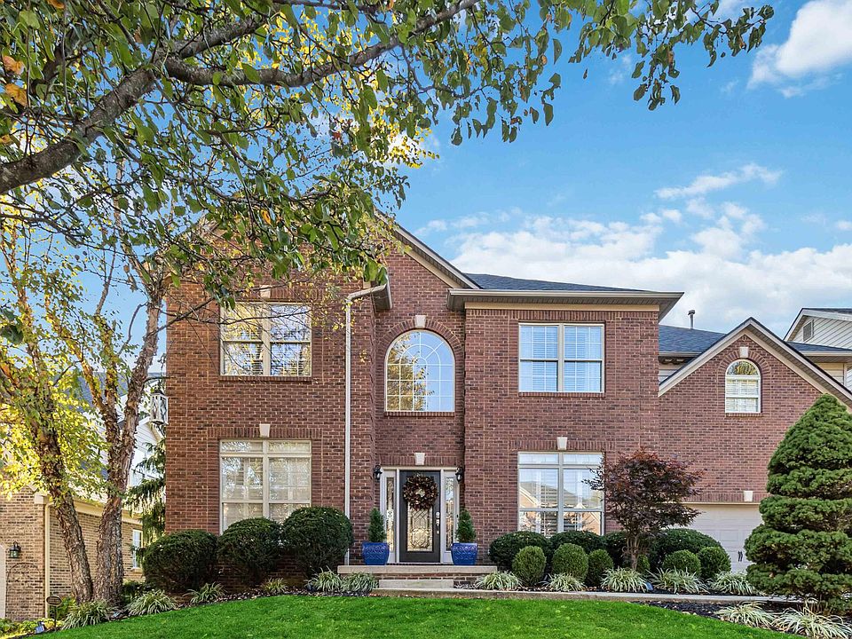 Upgrades Galore! Discover this one owner, immaculate 5 bedroom, 4-bath home offering over 4,000 sq ft of exquisite living space. Stunning two-story living room adorned with tall windows, a cozy fireplace, built-in shelves, wainscoting, and gleaming hardwood floors through most of the 1st and 2nd levels. The elegant iron railing adds charm to both levels. The kitchen boasts granite countertops, a stylish backsplash, variable-height cabinets, a breakfast bar, and a coffee station. The dining room features crown molding and plantation blinds, while the main floor office doubles as a potential bedroom. Relax on the expansive deck with serene views. The luxurious primary suite includes crown molding, a tray ceiling, and an ensuite bathroom complete with a whirlpool tub, a separate walk-in shower, dual sinks, and tasteful tile finishes. The spacious walkout basement is perfect for family fun or entertaining, featuring a full bath, a storage room, and even a putting green. An additional exercise room can serve as a sixth bedroom or office. Step outside to a lovely patio in your private backyard, which backs onto open space. Convenient to I-75, Hamburg Shops, Restaurants & Hospital