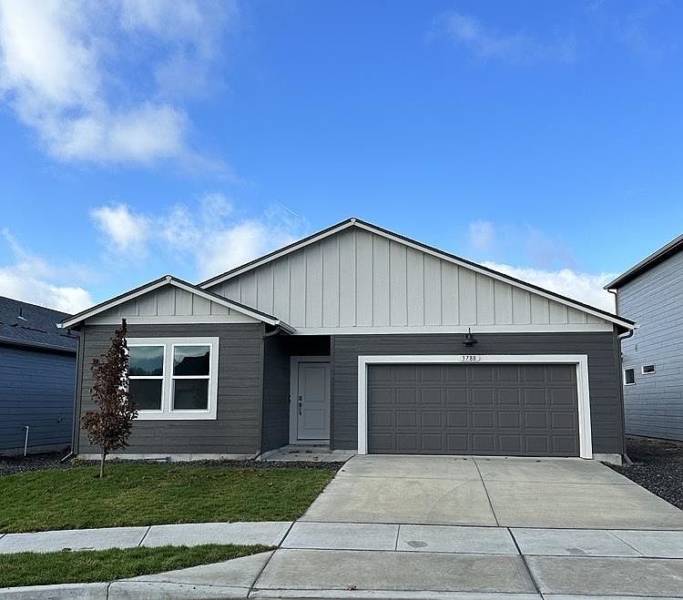 Welcome to D.R. Horton's popular Kerry floor plan! This idyllic 3 bed, 2 bath home is designed to provide comfortable and enjoyable living on one main floor. As you walk in, you will be greeted with grand 9' ceilings and designer plank laminate flooring. Find the first two bedrooms conveniently located upfront with a shared full bathroom. The main living area offers an open concept that allows the kitchen, dining and living room to flow seamlessly together. The kitchen includes quartz countertops and stainless-steel electric stove, microwave and dishwasher, and plenty of cabinet space for storage. Primary bedroom is located off the living space and near the laundry room, and comes complete with en suite bathroom including a stand-up shower and large walk-in closet. Full house gutters, and front yard landscaping with irrigation come included! Enjoy included smart home tech package and energy saving features. Photos are used for representation, please verify interior and exterior colors with listing agent.