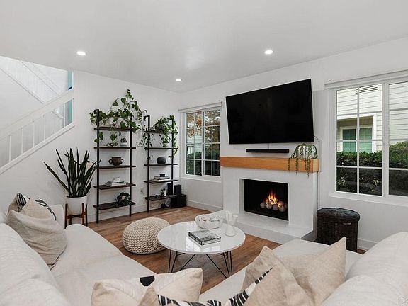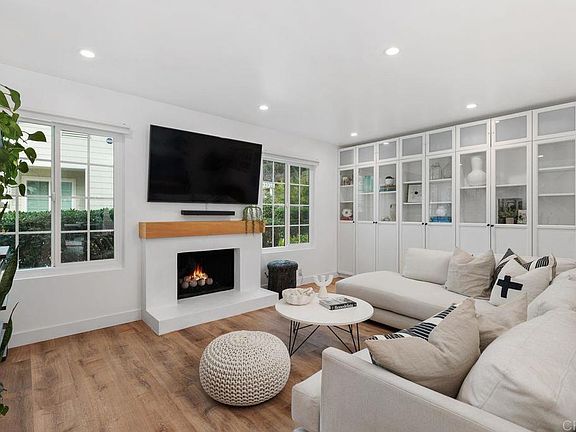 This is THE ONE! Private, peaceful and perfectly updated - this EXCEPTIONAL townhome is your serene escape, with every detail thoughtfully designed! Step inside to discover luxury flooring throughout, a remodeled kitchen featuring stainless steel appliances, quartz counters and updated cabinetry. The bathrooms boast newer bathtubs and vanities, while the spacious upstairs laundry area adds everyday convenience. Thoughtful details like built-in cabinetry upstairs and downstairs, resurfaced walls (hard to come by!) with 4.5” baseboards, under-stair storage, an incredible outdoor storage closet, and pull-down attic stairs enhance functionality. Take in the sights and sounds of nature as you sit and relax out back on the paver patio or beautiful wood deck with covering. Recent updates include a refinished fireplace, custom closet organizers, auto blinds, a built-in Murphy bed with side dressers, and more. Attic has newer insulation and was built-out storage. Newer Heating and A/C units. This fantastic community features sidewalks that meander throughout the neighborhood, and a pool + hot tub for your enjoyment. Easy access to the beach, hiking/biking Mt Calavera, and popular Carlsbad Village for shopping and dining. Don't miss this move-in ready gem! Welcome home to your modern coastal masterpiece!