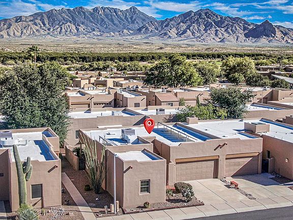 Experience easy living in this fantastic 2-bedroom, 2-bathroom townhome with a 2-car garage, partially furnished and nestled in The Springs! . Enjoy energy savings year-round with a fully owned solar system and recent updates including fresh interior (2023) and exterior paint (2025). Step through the charming courtyard into a bright, contemporary open floor plan featuring ceramic tile flooring throughout the main living areas. The kitchen is well-appointed with stainless steel appliances, a double pantry, and a breakfast bar--ideal for morning coffee and it flows seamlessly into the dining area, creating a perfect space for entertaining. Designed with a split floor plan for added privacy, the owner's suite offers carpet flooring, a walk-in closet and step-in shower, while the guest bedroom features a window box with a sitting bench, a double closet, laminated wood flooring, and a guest bath with a shower-tub combo. Relax outdoors in your private backyard retreat, complete with a covered porch, paver patio, and a charming southwest-style gate. Enjoy all the amenities that the Green Valley Recreation center offers, and in addi,tion you will have easy access to the De Anza Trail, and Canoa Ranch Lake. Whether you're looking for year-round comfort or a winter escape, this home blends relaxation, convenience, and that magical Southern Arizona lifestyle.