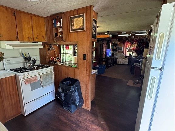 Private setting on 3.49 acres+/-. 1964 trailer that has two bedrooms, full bathroom with laundry. Washer and dryer included. Kitchen with stove, refrigerator, microwave and breakfast bar. Living room. 3 Wall AC units in the trailer, two of which are new. Covered front porch to sit and enjoy the privacy. Barn has living (hunting) quarters with a non-working toilet. Property will come mostly furnished. Property being sold As Is. Outdoor camera surveillance present. Cash or in-house bank financing only. Utilites are on. Sellers says AEP electric, propane gas, Windstream internet, well water with well house, septic.