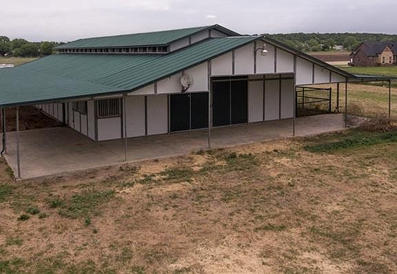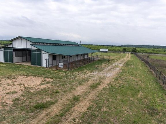Mineral Wells 35.011 acres horse facility. 3198 sq ft. barn with a 2208 square feet open porch. Two 200 square feet loafing sheds located inside 2 large turn out pens. Stock tank with catfish. Exterior feeding stalls. Pipe fence with auto entry gate. Large Coastal Field. City utilities. Barn has 9 interior stalls. Office-sleeping quarters with all the amenities. Gutters attached to building with drainage to the tank. Pens and Fences constructed with 2 inch pipe. Just a few miles from downtown Mineral Wells.