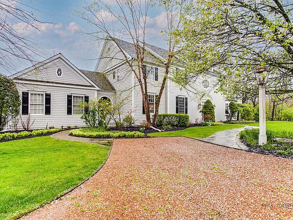 This fabulous home exudes grandeur and charm! Sitting on 1.38 gorgeous acres, this beautiful home was designed and built by Gene Martin and features new finishes, lovely architectural details, a new furnace (2024), a new roof and flashings (to be installed March 2025), intricate millwork, hardwood and stone flooring, high ceilings, and an abundance of natural light. There is a 1st floor bedroom w/ full bath, 5 bedroom suites on the 2nd floor and 1 or 2 bedrooms in the lower level, 6 full and 2 half baths and 4 gas start/gas log fireplaces. The grand foyer, with formal powder room, is flanked by an elegant dining room with wainscoting and a generous living room with exquisite gas fireplace w/ marble surround, a large bay window, door to the library and is open to an inviting sunroom with three walls of arched windows. The expansive gourmet kitchen has top of the line appliances, stone counters, a huge center island with seating for 6, walk-in pantry, wine closet, breakfast area with French doors to the back deck, and is open to the large family room with beautiful stone fireplace and another set of French doors to the lush backyard. Off the family room is a beautiful library with an onyx marble surround gas fireplace and built-in bookshelves. The back hall leads to a large mudroom with slate flooring and custom built-ins, a door to the oversized three-car garage, service entrance door, door to the backyard and a bright separate laundry room with built-in cabinetry. Also on this floor is a lovely bedroom, a full bath and the back staircase. The second floor has a huge primary suite with a sitting area with fireplace, large bath w/ separate water closet, walk in shower, jetted tub, and a huge walk-in closet. There are also 4 additional bedrooms, 2 large en-suite bedrooms, and 2 large bedrooms w/ a shared bath. The third floor is a hidden gem with a plush home theatre w/ custom seating for 12, a concessions area, billiards area, handsome half bath and a private office w/ built-in bookshelves. The full lower level has 1 bedroom, 1 exercise room, a large recreation room, kitchen area, full bath, a large storage room and mechanical room with space for additional storage. The circular drive leads to a large parking area on the side of the house near the oversized three-car attached garage. The deck has plenty of room for entertaining, grilling and enjoying the beautiful sunsets. The professionally landscaped property features lovely plantings, gardens and mature trees throughout. New carpet in several rooms, fresh neutral paint finishes throughout much of the interior of the home. Exterior painted in 2024. This residence has been meticulously cared for and improved by the current owners and is a must see! Move right in and enjoy all that this amazing home has to offer!