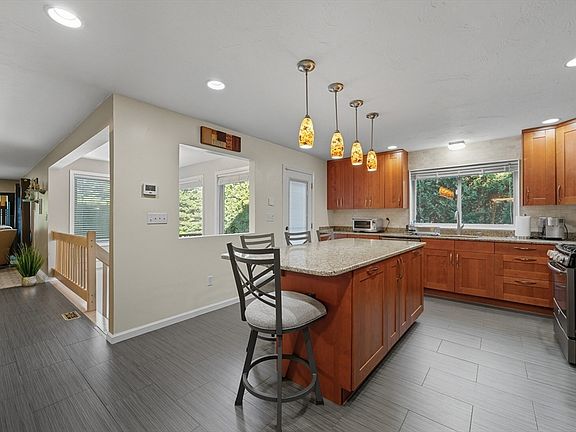 Gas fireplaceModern finishesPrivate deckFlexible family roomOpen-concept kitchenGranite countertopsLarge center island