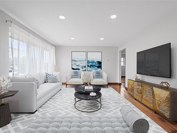 Move right in to this updated ranch on a quiet street in Penn Hills! Fresh paint throughout, hardwood floors, new flooring in kitchen and bath, new lighting, and more! Spacious living room with dining area leads to the beautiful kitchen with new counters and hardware. All three bedrooms are on the main level. The partially finished basement features an updated half bath, laundry area, and game room. Integral garage, great yard, and new landscaping. Welcome home!