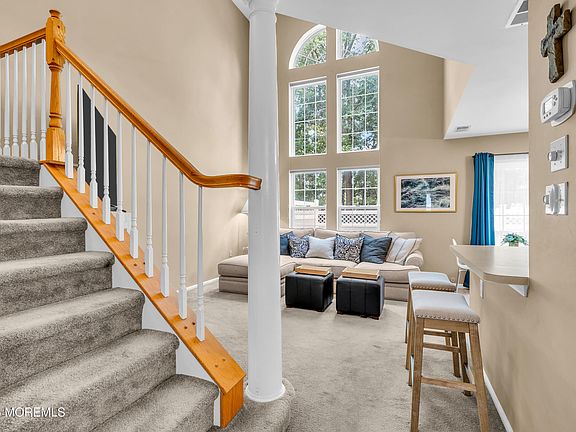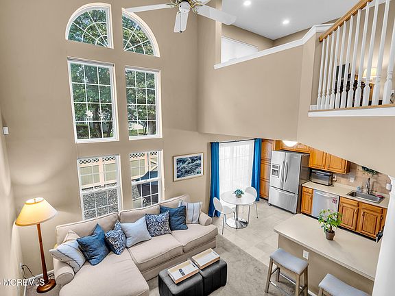 Highly desirable Hidden Meadows in the Wayside section of Ocean Twp! This spacious 2-story unit with attached garage offers an open-concept first floor featuring living, dining, and family rooms with soaring vaulted ceilings, a new powder room, and akitchen with stainless steel appliances leading to a private fenced patio. Upstairs includes a loft/office, large 2nd bedroom, a renovated full bath, laundry with washer & Dryer, & a master suite with vaulted ceiling, 2 walk-in closets, & a stunning new bath with double sinks, walk-in shower, & freestanding tub. Added highlights: newer high-efficiency HVAC, abundant closets, plenty of attic storage, plus convenient extra parking. Enjoy resort-style amenities—clubhouse, pool, tennis, basketball, and bocce. Within minutes of GSP, Rt. 18 & Rt. 35
