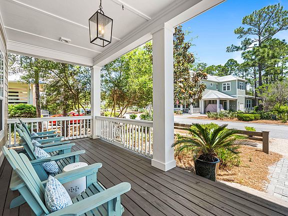 Enjoy a true WaterColor lifestyle with expansive porches on three sides of the home. A welcoming front porch sets the tone, while the primary suite opens to a private second-floor porch overlooking the street. The screened-in back porch wraps the full length of the home and offers serene green space views ideal for morning coffee or evening gatherings.