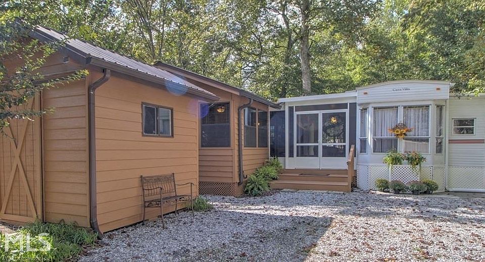 Immaculate well kept cabin and park model located in the upscale gated RV resort, Paradise Valley. One of the few cabins that has a separate bedroom and grandfathered in with 496 sq ft. Situated on a noisy state stocked trout stream with lots of outdoor space to enjoy it! The cabin is all wood, wood floors and a large kitchen, spacious living area, bedroom and nice sized bathroom with linen closet. The park model has a second full kitchen, living area, full bath and bedroom. There is a newly screened in porch between the two. Off the back is massive deck area to enjoy the sounds of the creek. A new storage shed was added to the property as well in the last year to store your motorcycles or use as a workshop or extra storage. Many upgrades have been added since purchase. Please request disclosure to see all that has been done. Purchase just in time to enjoy the leaf season in the beautiful N. GA Mountains close to Helen, Sautee Nacoochee, state parks, wineries, Dahlonega and Blairsville. Community has pool, clubhouse, private roads, gated security and lots of activities! Must be accompanied by agent to view, gated community. Not for full time living.