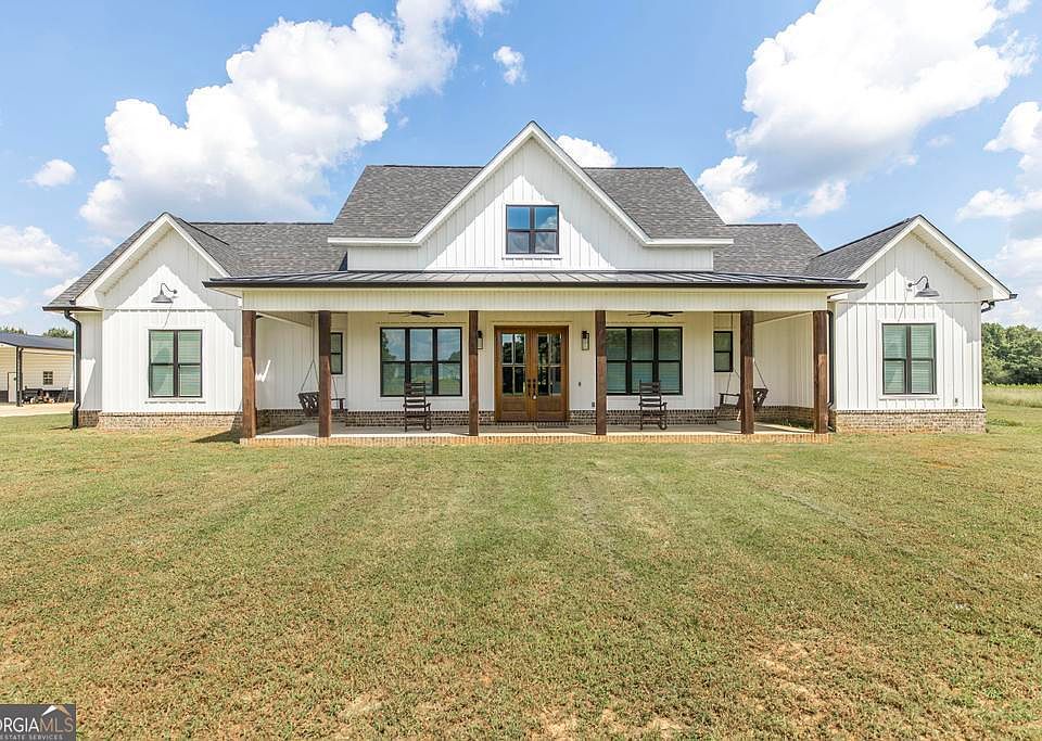 Stunning 2023 Custom- Built Home- 5 Bed / 4.5 bath + Office + Shop! Welcome to this beautiful custom-built home, offering the perfect blend of luxury, comfort, and functionality. From the inviting rocking chair front porch to the expansive open-concept living spaces, every detail has been thoughtfully designed. Inside, the gourmet kitchen boasts granite countertops, large center island, farmhouse sink, custom cabinetry, built- in microwave (convection), wall oven, and gas cooktop-all framed by a picture window above sin k overlooking views of the backyard. The living room features a gas fireplace with brick surround and shiplap accent wall,and a 4-panel sliding door that opens to the covered outdoor living space with wood burning fireplace and tongue-and-groove ceiling. Each of the 5 bedrooms and 4.5 baths are beautifully appointed. Bathrooms feature porcelain tubs,tiled surrounds, and glass shower doors. The primary suite includes 2 large vanities with granite countertops,custom walk in shower and 3rd vanity for makeup. Large walk in closet with custom built-in drawers and cabinetry. Additional interior highlights: 8' interior doors throughout, LED-lit staircase,Cat 5 cable, Foam Insulation, Tankless water heater, 3 HVAC Systems, & tinted windows. Step outside to enjoy a spacious backyard, a serene stocked pond, 30x50 shop featuring a full bath, custom water filtration system & water softener, separate hot water heater, 15x30 awning, dedicated HVAC, & Insulated garage doors. The property is complete with underground power, soffit outlets, security lighting, gutters and HUNTING & FISHING LAND GALORE to include Deer, Ducks, Dove, & Quail!! Call for your personal tour.
