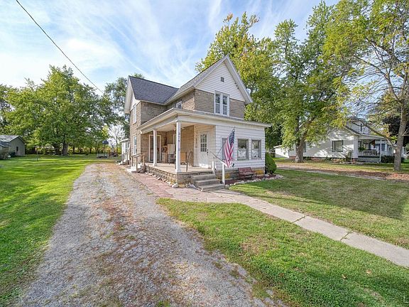 Lovely farmhouse style home with so much potential to re-create with modern day taste! This spacious home offers 4 bedrooms with an additional room that could be made into a 5th bedroom, main floor laundry, as well as a spacious dining and living space. Covered porches galore, front and side. Back wood room offers great extra storage or space to be finished off into a separate all purpose room. You will admire the spacious backyard that backs up to farmland, sidewalk lined streets and Britton Village amenities within a short stroll.