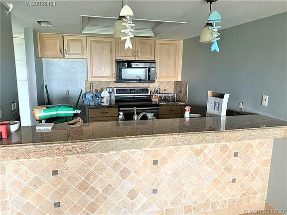This is an extremely rare find. Hutchinson Island, Resort Villas Condo #1 unit #103 on the second floor with ocean views. This quiet and secluded 2/2 condo needs a "fresh eye" and some personal touches. The kitchen has granite countertops, wood cabinets, drop lighting, tiled backsplash and black/stainless appliances. The tile floor in the living room matches the kitchen colors. The unit is being sold as-is and will need some flooring and ac work or replacement. The flooring in the second bedroom was started and not finished. The flooring supplies will be included in the sale. Tropical Paradise- Location, Location, Location.