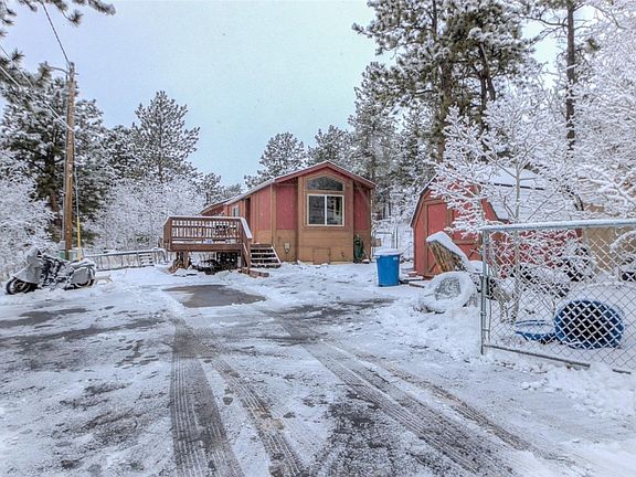 Surrounded by Pike National Forest, Harris Park Estates with its fishing ponds, hiking trails, campgrounds, shooting range, and 4-wheeling, is a mountain playground. The peaceful beauty and incredible views are worth the drive! Tired of paying rent(someone else's mortgage)? You'll be challenged to find a move-in ready house with well, septic, and .38 acre for under $200K. This 2 bedroom/2 bath house has a new roof, newer windows and appliances, and a fully-fenced useable lot.