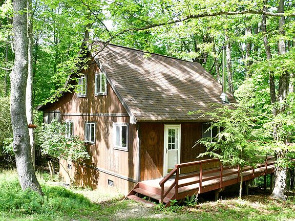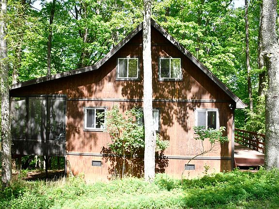 Fantastic opportunity to own a cozy retreat in the woods in the private resort of Hide A Way Hills. So many options w/ this property given the extra lots. Expand on the existing cabin, enjoy as is like the current owners have been doing for 30+ years, or use a temporary residence while building on the adjacent lots then sell cabin or keep for guests to use. A great location close to many of the amenities & front gate offering privacy & seclusion. Nature is your neighbor here! This home features a lovely, screened porch, large sleeping loft, well laid out, bright kitchen, & a woodburning stove that easily heats the entire cabin. A large deck that overlooks lot 239 is perfect for relaxing & entertaining. Must be w/ an agent to enter HAH. Long term rentals of 30+ days only. No VRBOs permitted