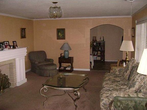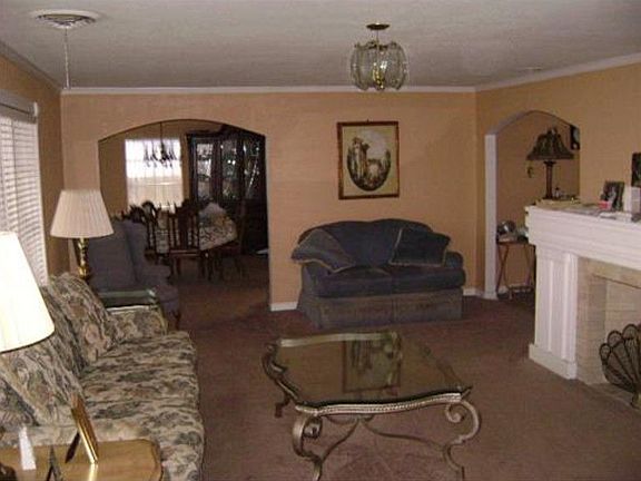 FURNITURE REMAINS! except roll top desk Has living, den, dining and breakfast rooms. Tile floors in the den and all wet areas. Living room 15'X22' with place for an electric fireplace. Remodeled kitchen and updated knockdown ceilings and orange peel walls. Lighted closets. Large yard(2 lots).