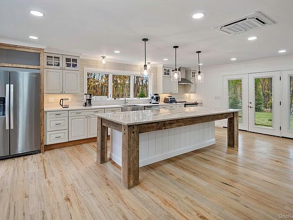 Welcome to 379 South White Rock Road. Nestled in the charming town of Pawling, NY this completely renovated country home offers an incredibly original blend of modern luxury and timeless rural charm. Rebuilt from the foundation up in 2023, very inch of this home has been meticulously reimagined and rebuilt by a master builder using only the finest construction materials. The result is a living environment that exudes elegance and serenity. Make this your full-time home, weekend retreat or Airbnb investment! Step inside and discover an open-concept floorplan seamlessly connecting the living, dining, and kitchen areas. The spacious and flexible layout is perfect for entertaining family and friends or simply enjoying daily life amidst a harmonious environment where nature’s beauty is displayed outside the new oversized windows. The sprawling kitchen, a chef’s dreamspace, features an enormous granite island stylishly accented with reclaimed barnwood, all new stainless steel appliances, abundant custom cabinets, farm sink, cooktop, a wine refrigerator and more. Soaring ceilings, heated wide-plank floors, a majestic wood-burning fireplace and custom millwork throughout this home highlight the craftsmanship that defines the home. Upstairs features the primary bedroom as well as two additional bedrooms, & a chic sumptuous spa-like full bathroom with dual sinks, heated floors, and granite slab walls. Additionally, the lower level offers an flex space that’s ideal for an office, den, gym, playroom, storage space, etc. The huge patio is one-of-a-kind masterpiece that’s perfect for host unforgettable outdoor events in a truly captivating setting! It features a large custom-built granite fireplace, grill, sink, large marble counters – all set amid a private & enchanting country landscape. It’s the perfect spot for celebrating birthdays, enjoying summer barbecues or just unwinding and relaxing in a retreat-like setting.