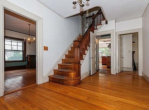Spacious and inviting 1900 Colonial in convenient East End Watertown location. This 10 rooms, 4-6 bedrooms, 3 baths colonial is larger than meets the eye. The oversized front porch leads to the grand foyer with original stair rail woodwork and 10+ feet ceilings. Hardwood floors stretch into the formal living room complete with pocket doors and large windows for ample natural light. A fireplaced family room with built-in shelving provides fantastic entertaining possibilities. A spacious dining room with wooden chair rail leads to a butler's pantry with extensive original cabinetry. Through the butler's pantry you are welcomed to the large eat-in-kitchen with skylights, ample cabinetry and a large windows overlooking the backyard. 2 stairwells lead to the 2nd floor complete with four corner bedrooms separated by a large landing area and a full bath. The 3rd floor offers 2 more potential bedrooms with gorgeous hardwood floors and another full bath. All this awaits your finishing touches!
