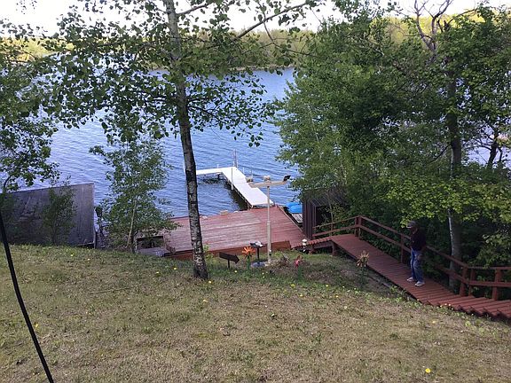 This property has a lot to offer. Main floor has 980 SF of living space. Master bedroom with large closets. 3/4 bath. Most of the furniture will stay. Walk thru kitchen, all appliances stay. Living room has two large sofas. Enter the sunroom facing lakeside. Sliding glass doors separate the sun room from the main house. Lots of entertaining and good times happened here through the years. It is oozing with personality. A futon and hide a bed give ample sleeping space. The 346 SF loft located upstairs comes equipped with 4 mattresses. Come one come all and enjoy Lake Metigoshe living. 60 Ft of Frontage with wood deck. Dock is included. Large storage shed to house beach toys or be converted into a fantastic bonus/guest cabin. Pump house to store water equipment. Beautiful views in all directions, Bear Island right out front. Pavers offer lots of parking space. Additional storage units at back of property. Trees on both sides offer shelter as well as privacy. Don't let this one slip through your fingers. Call and we will schedule you to take a look soon.