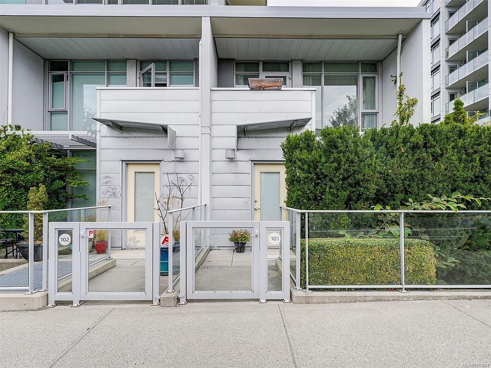 Stylish & bright townhouse exemplifies chic urban living. A corner unit with floor to ceiling windows, and a great private patio. As you step inside, bamboo floors welcome you to a great layout for entertaining with a fantastic kitchen with eating bar, including premium appliances and granite surfaces. Upstairs, the two bedrooms are nicely sized and very bright with their large windows & over-height ceilings. Balcony off the primary bedroom to enjoy the afternoon sun. A superb location, and a great layout. Walking distance to downtown, close to shopping, pubs and all amenities. Short stroll to numerous cafes, bakeries and shops.