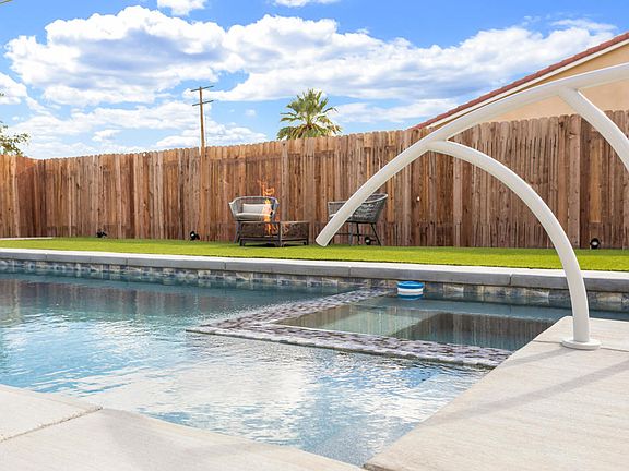 Nestled amidst the breathtaking backdrop of the San Jacinto Mountains, this rare 4-bedroom home offers the perfect blend of comfort, convenience, and desert charm. The spectacular pool, spa and landscaping was just finished in 2023! With the open concept living and dining room, you can be a part of the conversation from your kitchen! Private en-suite master bath with tub. Gorgeous views of Mt. San Jacinto from your living room and backyard. The orientation of this home is perfectly situated for views to WOW! Backyard has been fully renovated with a private heated pool featuring top of the line Jandy equipment, spa, turf area, and concrete pads to enjoy the expansive yard. The owner has made numerous upgrades to the home including new double-paned windows and slider door, new flooring throughout the common areas, new kitchen cabinets and counters, and new kitchen appliances. This is a 'smart home' with the security system, garage doors, and thermostat all synced to a Wi-Fi hub which can be controlled on your phone! Whether you're seeking a new home or vacation rental, welcome to your private oasis! Don't let this deal pass you by!