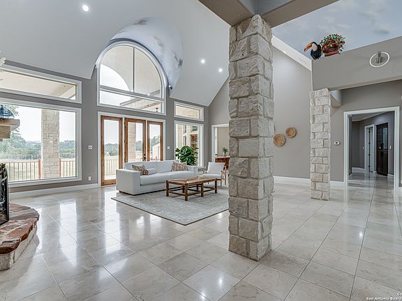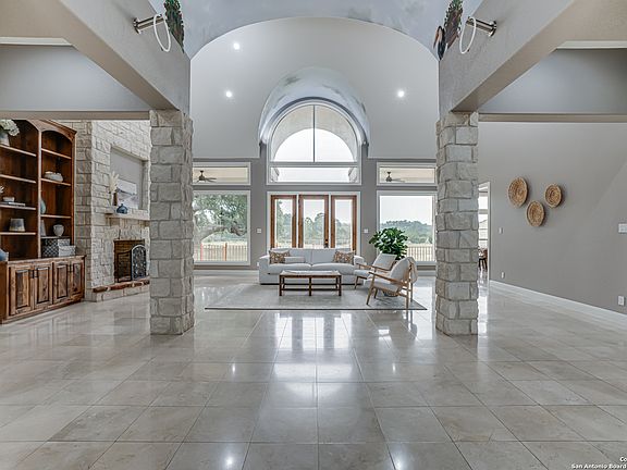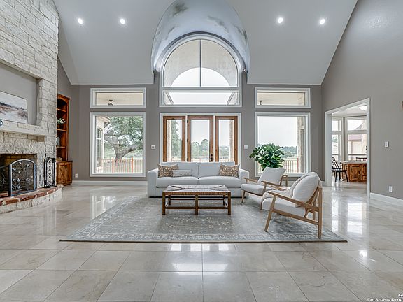 BACK ON MARKET, due to buyers financing. Seller is offering $20k towards seller concessions. Enter through your private gate and be greeted by a grand circular driveway, leading you to a beautiful and unique property nestled on 5 acres of parklike setting in the stunning Hill Country of Spring Branch. This serene estate is surrounded by majestic oak trees, offering natural beauty at every turn. A covered passageway seamlessly connects the garage to the main home, providing both convenience and charm. Step through the front doors and be captivated by the expansive living and entertaining area, boasting breathtaking views of your sprawling acreage and lush oak trees. The space has gorgeous stone columns, a floor-to-ceiling fireplace, and custom wood built-in cabinets. Throughout the home, you'll find exquisite built-in cabinets with glass doors, adding both elegance and functionality. The primary bedroom is a true retreat, featuring a magnificent Austin stone wood-burning fireplace shared with an adjacent office or cozy sitting/reading room. The primary closet is spacious and designed to meet the expectations of a custom home. With nearly 6,200 square feet of living space, this home offers ample room for comfort and luxury. Four of the five bedrooms are en-suites, providing privacy and convenience for family and guests. Upstairs, you'll discover a large game room, media room, a full bathroom, and additional closets for extra storage. The home's large, beautiful windows allow natural light to flood in, creating a seamless connection between the indoors and the picturesque outdoors. Step outside to the expansive patio, perfect for outdoor entertaining and relaxation amidst the stunning Hill Country scenery. As part of the coveted Cypress Springs community, you'll have access to River Park, featuring the beautiful Guadalupe River. Enjoy covered pavilions with BBQ pits, and a campground for RV parking spots for your guests. Come experience the beauty and tranquility of this remarkable property in the heart of the Hill Country! ---