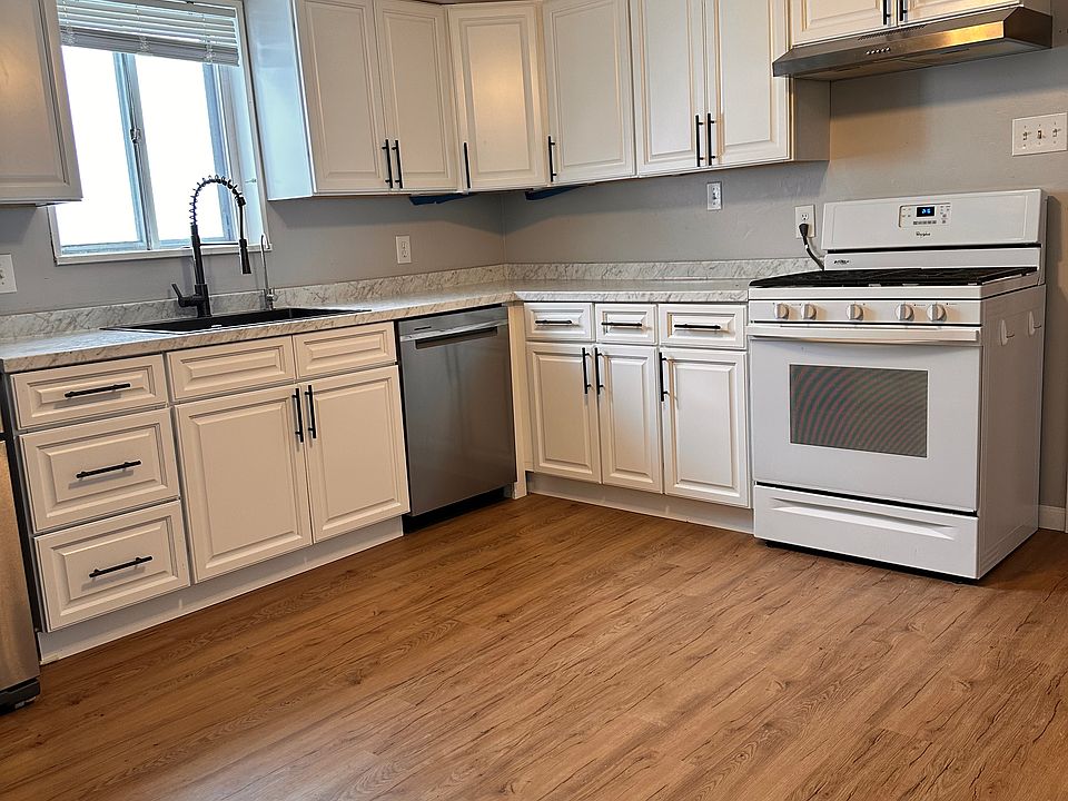 Come check this apartment with new kitchen cabinets, counter top, dishwasher,new flooring throughout the apartment. Gas stove/oven, refrigerator, dryer and washer included. No smoking. No pets. Month to month lease, 1st month rent and security deposit due before move in. 1 garage space available. Owner pays water. No smoking.
