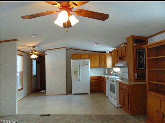 Low maintenance living can be found in this three bedroom, two full bath 60x16 Schult 2002 Manufactured home. Large kitchen offers all appliances, plenty of cabinet and countertop space, open to large living room with newer neutral color carpeting that also leads to the back bedrooms which are of nice size. Large Master bedroom has walk in closet, double doors to master bath with tub / shower, vanity, both bedroom and bath have newer vinyl plank flooring. Laundry room supplies newer washer, gas dryer and storage cabinets. Large deck with awning to relax on in the warm days of Summer, storage shed for your extras, this home is located at the end of the street so does supply a little more privacy. Range in kitchen is electric, gas is available, Hot water tank also gas approximately 5 years old. Buyers must be approved by park. Schedule your showing today.