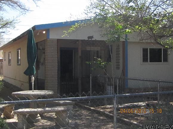 Price just reduced!! Bring your offers!! Owner willing to carry with $10K down. Charming Oasis in Kingman! You could be very comfortable in this lovingly crafted Cottage, made from a single-wide mobile home and a site-built add-on which doubled the size; all work permitted. Shaded by extra large poplar trees, the many special touches make this pretty little home very special. Lots of hand-crafted & Ikea built-ins throughout. Dining area & Kitchen captivate with stunning blue & white counters and cabinets. Home heated by wood-burning stove and electric heaters in both bathrooms. Built-in fans circulate the heat. Outside on the oversized lot is a big garage, lots of parking space, 2 storage sheds, a dog run/animal pen, a little garden area, mature landscaping, and a nice picnic area. Completely fenced with chain-link. There is a 2nd, large septic tank installed but never used. Too many extras & personal touches to list. Pergo flooring. A few things are not finished and a few items need repair, but the Owner is unable to complete & repair them. This may be one of the nicest "As-Is" homes around.