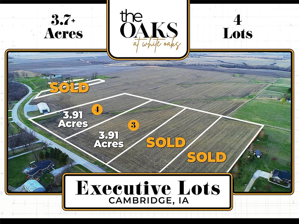 Welcome to The Oaks at White Oaks, a rare opportunity to build your dream home in the picturesque countryside of Cambridge. This 3.91-acre executive lot offers flexibility for a flat or daylight build. Surrounded by the natural beauty of mature white oaks, this peaceful setting is ideally located between Ankeny and Ames, offering the perfect blend of rural tranquility and convenient metro access. The lot sits on pavement and includes city water (Des Moines Water Works) and electric (Consumers Energy). With open farmland behind expected to remain in agricultural use, you’ll enjoy lasting privacy and scenic views. With covenants in place to protect your investment and the flexibility to add outbuildings, The Oaks at White Oaks is the perfect place to bring your acreage lifestyle to life.