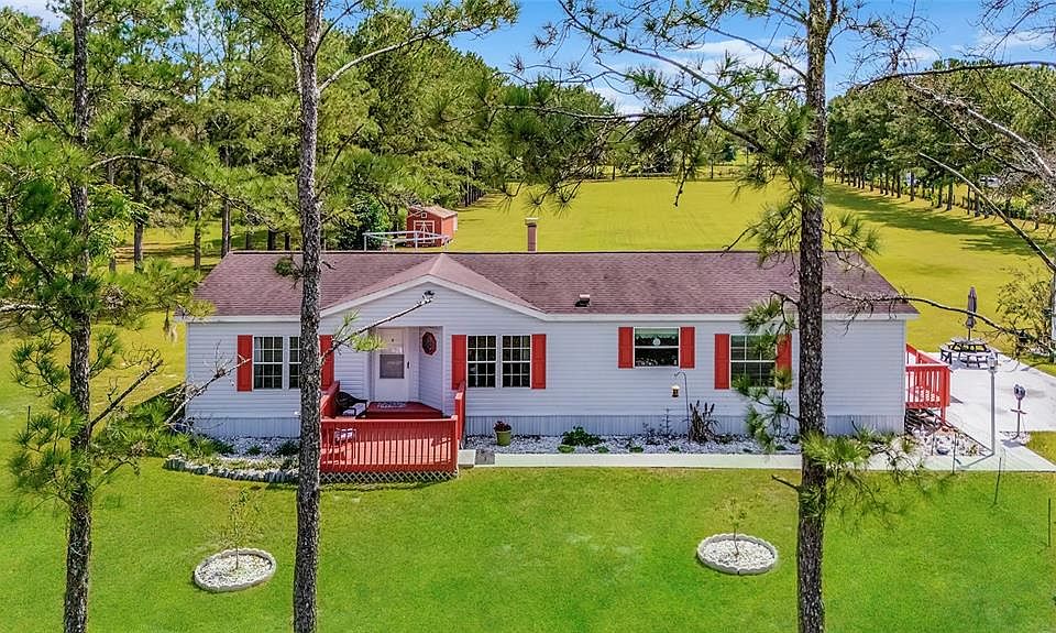 Don’t miss your chance to own this exceptional country retreat, where privacy, charm, and possibility come together on three agriculturally zoned acres. This beautifully maintained 3-bedroom, 2-bath home offers a relaxed, farm-like setting with all the comforts of modern living. Inside, you’ll find a spacious, light-filled living area with soaring ceilings, fresh interior paint, updated laminate flooring, and a cozy wood-burning fireplace that invites you to unwind. The eat-in kitchen is both stylish and functional, featuring decorative chair rail accents, newer appliances, generous counter and cabinet space, and a pantry to keep everything organized. The owner’s suite offers a peaceful retreat, complete with a spa-inspired bath featuring a soaking tub, double-sink vanity, and a spacious walk-in closet. Two additional guest rooms and an upgraded guest bathroom provide comfort and flexibility, while the inside laundry room—equipped with a front-load washer and dryer—adds everyday convenience to this thoughtfully designed home. Step outside and the charm continues. Multiple wood decks invite you to sit back and take in the scenery, while the above-ground pool with its own lounging deck offers a refreshing escape with views of the sweeping, tree-lined acreage. Whether you're hosting weekend barbecues or savoring your morning coffee, the expansive outdoor patio sets the stage for relaxed, open-air living. Practical upgrades bring peace of mind, including a 2020 HVAC system, a 2017 roof, a new well pump, a detached carport and utility building, and a storage shed for all your tools and toys. Every corner of this property is designed to support a lifestyle of ease, privacy, and connection to nature. Whether you're envisioning a hobby farm, a quiet retreat, or simply room to breathe, this home delivers. Move in today and start living the life you've been dreaming of.