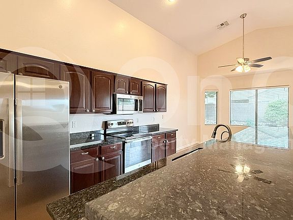 Step inside this 1,871 square foot single-story home featuring 3 comfortable bedrooms and 2 full bathrooms in Chandler's inviting Redwood Estates neighborhood. The kitchen is bright and functional, offering a refrigerator, stove/oven, dishwasher, built-in microwave, water RO system, and plenty of cabinetry for storage. The open living area showcases natural light, smooth laminate floors, and neat tile flooring that enhance the home's modern and inviting atmosphere, with a seamless flow perfect for entertaining or relaxing at home. The versatile floor plan also includes a cozy dining area ideal for family meals or hosting guests. The primary suite provides a walk-in closet and a private ensuite bath with dual sinks and a large step-in shower for a spa-like feel. Two additional bedrooms offer generous space and ample closet storage, complemented by a second full bathroom. The laundry room includes a washer and dryer, while the home also features whole-home AC, ceiling fans, and a water softener located in the garage for added convenience. A 2-car garage offers covered parking and extra storage options. Outside, enjoy a fenced backyard with a covered patioperfect for morning coffee or evening barbecues. Located in the desirable Redwood Estates community, residents enjoy access to playgrounds and scenic biking and walking trails. Set in a prime Chandler location near top-rated schools in the Chandler Unified School District, with nearby parks, shopping, dining, and easy access to the Loop 202 for quick commuting.