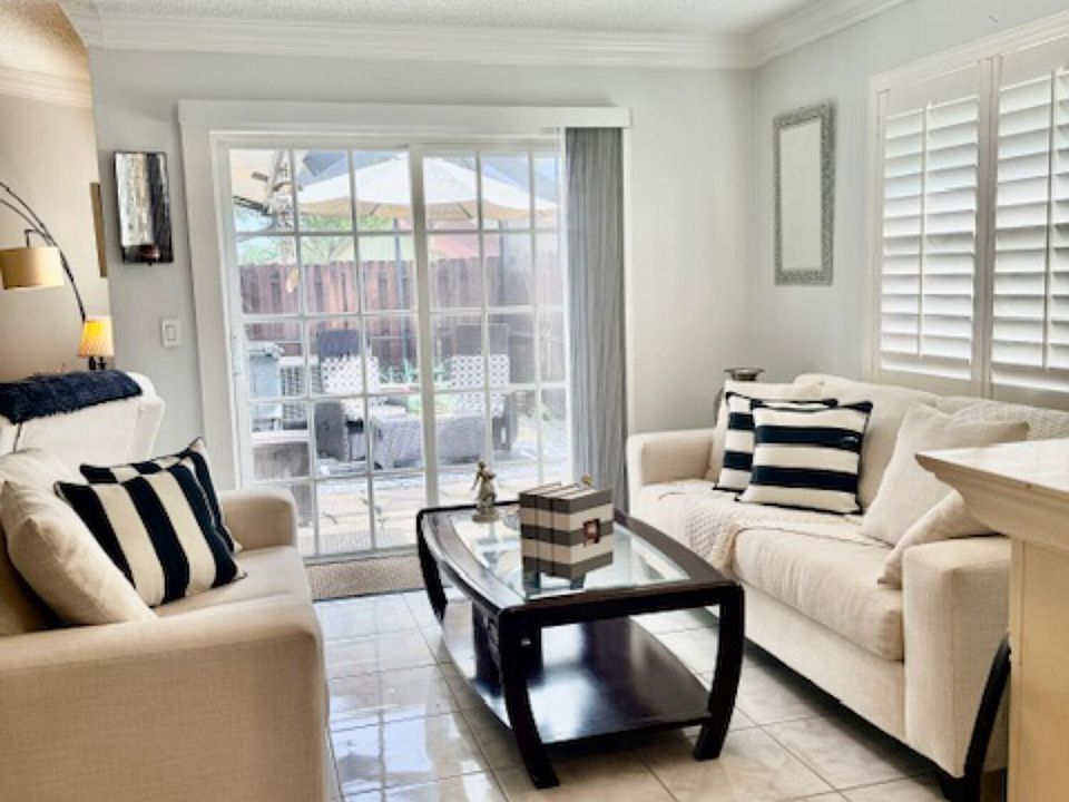 Beautifully remodeled 2-bedroom, 2-bathroom villa located in the highly desirable 55+ community of Oakwood Lakes West. This spacious home features an open-concept floor plan in which the living room area, the family room area, the dining room area, and the kitchen area, are all visible and accessible from the center of the home. The ceiling rises dramatically from the living room through to the kitchen with a skylight for natural sunlight. Two fully tiled and upgraded bathrooms (one with a relaxing Jacuzzi tub) are in the bedrooms section of the home. White -grey tiling on the floor. New sliding glass doors and wood shutters on the smaller windows. All decorator interior doors are wood. New crown molding and baseboards throughout the home. New breaker panel. The A/C is 2 years old and serviced every 6 months. The screened patio area has an irregular concrete tile floor and is surrounded by a recently stained 6 foot privacy wood fence. Concrete flooring has been removed to leave a space for plants on the patio and is covered by river rock. An assigned and convenient parking spot is just steps from your screen and fence door. Large storage space in attic with built-in ladder. Accordion aluminum shutters covering all the windows for hurricane protection. HOA fee covers access to community amenities including a meeting room (which can be rented for large parties), a library, a large heated or cooled pool, and a tennis/pickle ball court, as well as cable/internet, insurance, exterior landscape maintenance, roof repair, and an on-site homeowner /administrator to the board. CONVENTIONAL / FHA / VA OK! Support animals with proper documentation and cats are welcome. No commercial vehicles or motorcycles allowed. Proof of funds or pre-approval is required with all offers. A great location which is close to supermarkets, retail stores, medical offices, just minutes from the beach, and a stones throw away from I-95 and the Turnpike. Everything you need is right here waiting for you. Don't miss out submit your best offer today!