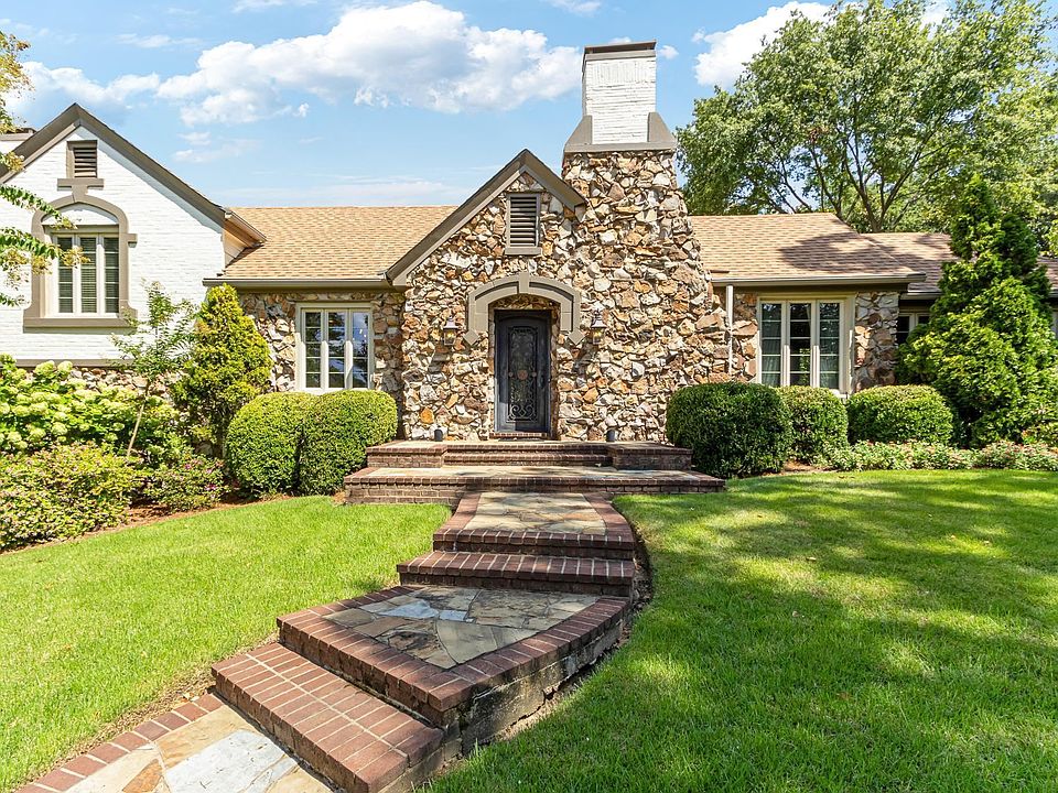 Three fireplacesBuilt-in sound systemSeparate laundry areaVintage red stoveStone pathwaysElegant hardwood floorsMahogany paneling