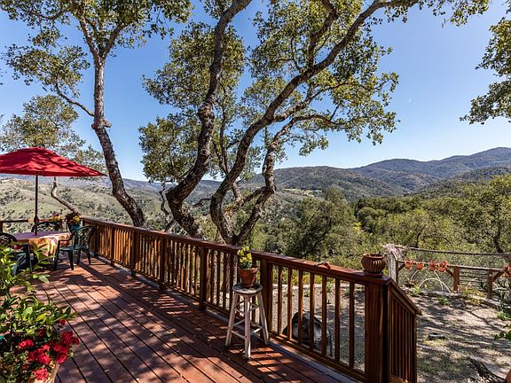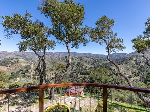 Your dream home is here in upper Carmel Valley. This is a beautiful country house on over 12 acres with 360 degree spectacular views. This quality constructed 2 bedroom 2 bath home has a charming kitchen opening up to a dining area and wonderful living room with vaulted ceilings and a delightful river rock fireplace. An added bonus on the property is a fully renovated 480 square foot barn with two/office studio spaces and workshop. The Master Bedroom has a wrap around deck featuring outstanding views. Imagine waking up each morning to nothing but mountain views as far as your eyes can see or enjoying your spa overlooking the mountain ranges . There is also a detached yoga studio. The landscaping includes a fish pond surrounded by numerous areas to entertain or relax. The property offers privacy inside a 4 property gated entry, a shared well and plenty of room for horses or a family compound. This very sweet slice of heaven is waiting for you. More photos coming soon!