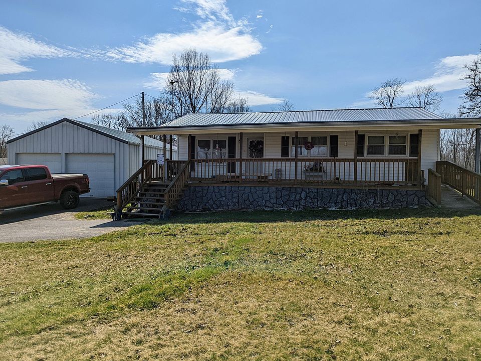 Up for sale is a very nice 3bed/ 1 bath home sitting on 7 acres! This home features a large 2 car detached garage, paved driveway, huge front porch, newer metal roof, large level yard, stainless steel appliances, washer and dryer, and a jetted tub in the bathroom!! All information to be verified by all buyers and buyers agents as it was gathered from public records. Subject to E&O.