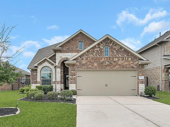 DISCOVER this beautiful 2-story BRICK and STONE home perfectly situated on a WATERFRONT LOT. Enjoy lovely views of the backyard and lake from the open-concept KITCHEN, DINING and LIVING areas. The main floor features 3 BEDROOMS and 2 BATHS including a large PRIMARY SUITE. The PRIMARY BATH boasts double sinks, a soaking tub, shower, and walk-in closets. A tray ceiling and bay window enhance this suite's elegance. Wood floors flow throughout the main living areas, with cozy carpet in the secondary BEDROOMS. Upstairs, find a private haven with 1 BEDROOM, 1 FULL BATH, a large GAME ROOM, and versatile FLEX ROOM, offering endless possibilities. An in-house LAUNDRY ROOM adds to the home's convenience. Step outside to a large covered patio, ideal for entertaining or simply unwinding. Iron-fenced backyard provides privacy and security, with a convenient gate leading to your very own fishing dock, complete with seating. 2 CAR-GARAGE with built-in EV charger completes this exceptional property.