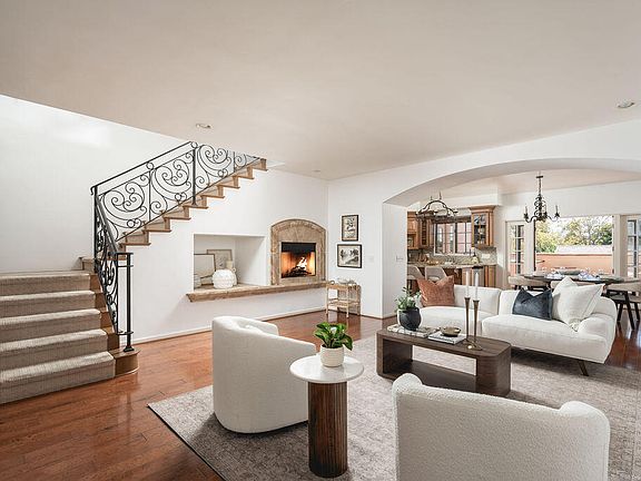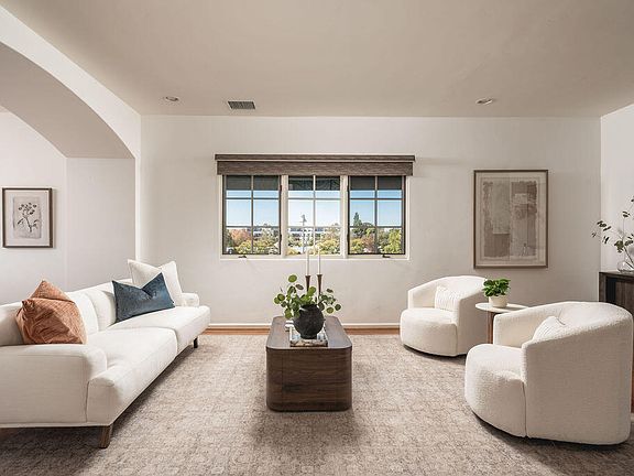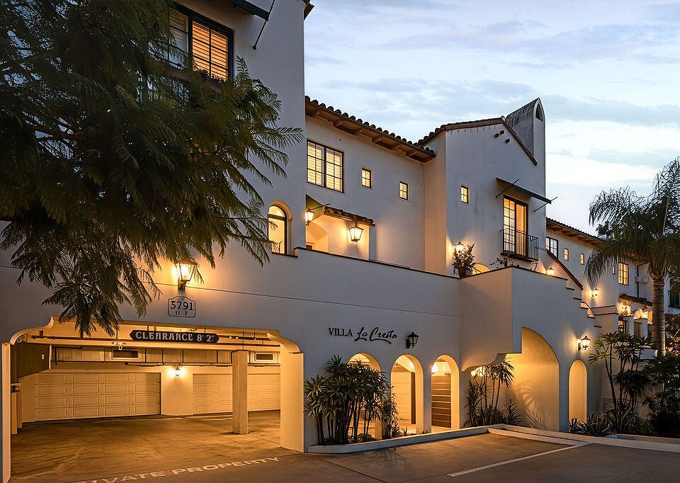 Villa La Cresta captures the essence of refined Santa Barbara living—where timeless Spanish architecture and contemporary elegance blend seamlessly in one of the city's most coveted enclaves. Ideally positioned in the heart of the Uptown La Cumbre district, this corner end unit offers exceptional privacy within an intimate six-residence community. With no neighbors above or below, it lives like a single-family home while providing the ease and security of condominium living. The red-tile roof, smooth white stucco, wrought-iron details, and sun-lit archways echo the romance of Santa Barbara's classic architectural style, creating a home that feels both enduring and inspired. Inside, approximately 2,400 square feet of light-filled space showcase high ceilings and sophisticated finishes throughout. The open layout includes three bedrooms and two-and-a-half baths, thoughtfully designed for comfort and style. The dining area opens through French doors to a private walled patio, ideal for alfresco dining or quiet morning coffee. Two spacious guest bedrooms, each with soaring ceilings and abundant natural light, provide inviting accommodations for family or guests.
