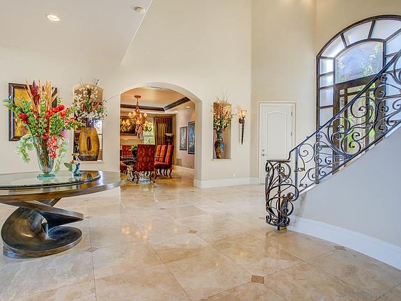Sophisticated elegance with panoramic and sunset views. As you approach this grand estate you are greeted with vibrant and mature landscape. Step into this architectural masterpiece designed to accommodate grand-scale living and entertaining. Ideally located in cul-de-sac this home displays the finest materials & detail work. A custom door opens to the foyer mesmerizing you with rich stone work and flooring. The spacious great room has a stone-faced fireplace and mantel with ceilings soaring 20 feet above. With this more than half acre lot you have potential to add a guest house, a pool or tennis court. No detail has been spared to make it perfect.