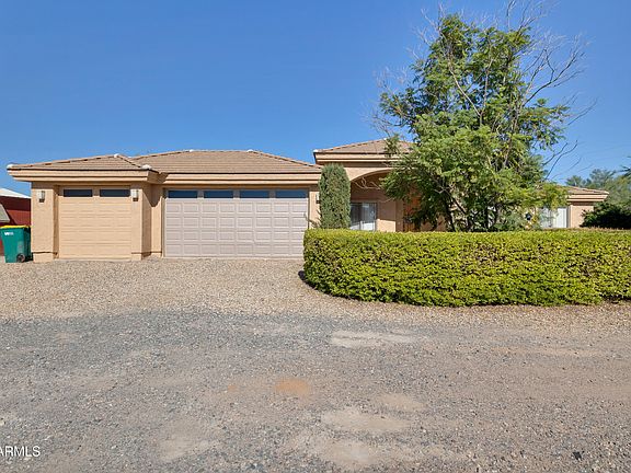 Bring your horses, cars, toys—even extra family! There's room for all on this 1.5+ acre property just 2 miles north of Carefree Highway. Owned by the same family since the early '80s, this special property features a custom-built 2003 home w/ a split floorplan, 4 bedrooms, 2 baths, 3-car garage, & detached studio. Kitchen features lots of natural wood cabinets, granite counters, & newer SS appliances, w/ a formal dining room, breakfast nook, & bar seating. The primary suite includes a large walk-in closet & bathroom w/ separate tub & shower. Additional features include plantation shutters, gas fireplace, and built-in garage cabinets. Enjoy the oversized covered patio, pavered park like areas front & back, & semi-enclosed garden. The detached studio/workshop w/ electricity and A/C makes a perfect office, gym, or hobby room. Property also offers partially fenced areas with water access, multiple sheds, and an extra septic tank, perfect for a 5th wheel or future guest house. So many possibilities with this much space. Don't miss out! Special properties like this don't last long.