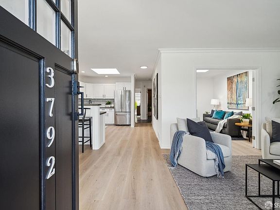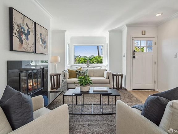 With easy access to the best of Noe Valley and the vibrant Mission, this bright, chic home offers a light-filled open-floor plan with a flow that is ideal for modern living. Entering the bright living room, the spaciousness is apparent as you look to the open dining area. A breakfast bar, the perfect place for morning coffee, separates the kitchen and dining room. The updated kitchen is flooded with light from the skylight above. It boasts stainless steel appliances, ample counter space and storage and is sure to please the most accomplished home chef. The living room, with a wood burning fireplace, has views of Bernal Heights, with the charm of an adjacent cozy den. A full bath is located off the hall leading to the two comfortable bedrooms. The tranquil primary bedroom has a stylish en-suite bath, and the second bedroom offers direct access to the sheltered back yard. The private yard has a bar with built-in tv, all designed for outdoor living and entertaining. On the lower level you find a one-car garage and bonus space with a convenient laundry area. With a Walker's & Biker's Paradise Score of 96, excellent Transit rating and near tech shuttle stops the convenience is exceptional. This is a rarely available opportunity to own a single-family home in the heart of the city.