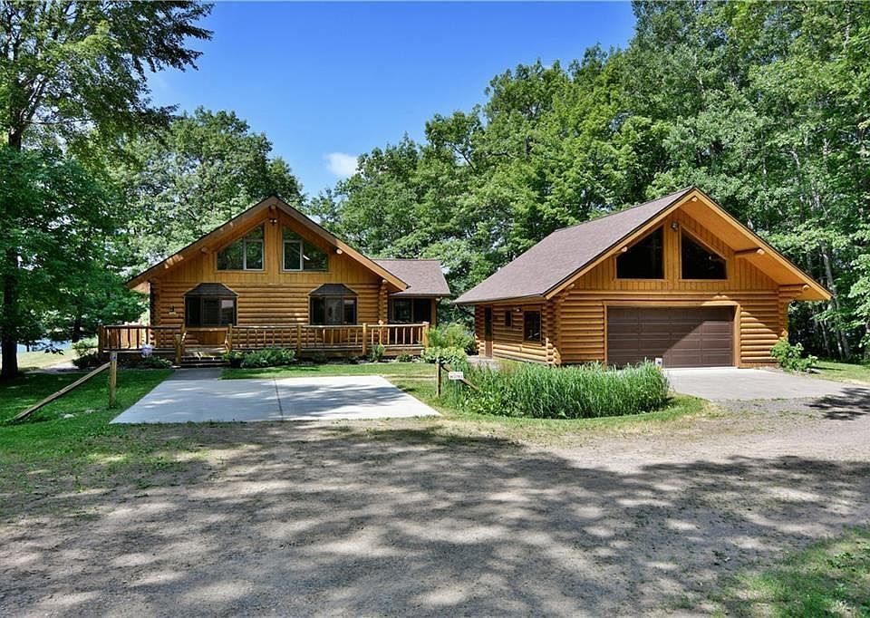 SPECIAL!! A property like no other!! Get the best of all worlds with this beautifully crafted log home nestled perfectly amongst towering trees with 33 acres and over 1700 feet of low elevation shoreline for one to enjoy. This 4 bedroom, 3 bathroom property provides all the peace and tranquility one could ask for. Home offers brand new high end wood flooring on 2 levels, soaring vaulted ceilings with loft, majestic stone fireplace, three season sunroom set perfectly to capture amazing sunsets. Adjacent detach garage/bunk house with kitchen, full bath and lofted sleeping quarters is ideal for entertaining guests. Need storage? No problem! Property boasts of a 40x64? heated shed and a 2nd detached garage (3 total outbuildings). Catch bluegills from the dock or swim in this sandy bottom lake. 33 acres has an abundance of wildlife including many deer. This is truly a must see to appreciate - a one of a kind property.!! Located only a couple miles from the Long Lake recreational area.