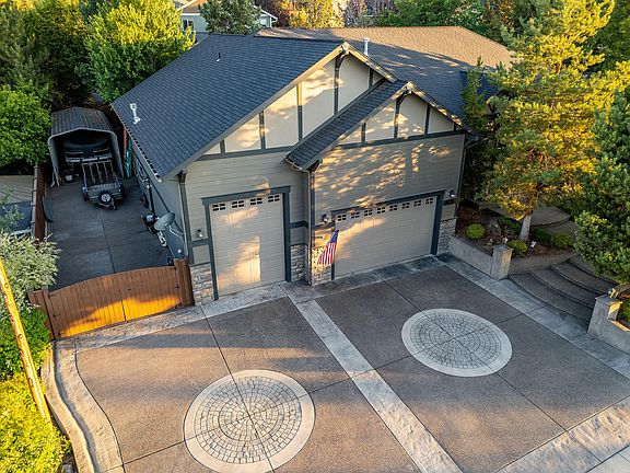 Set in an upscale neighborhood with a spacious, open feel and no neighbors across the street, just peaceful open land. This beautifully updated single-level home is perfect for an active lifestyle. Enjoy newer bamboo flooring, quartz counters, tile backsplash, wall ovens, fresh paint, lighting, and carpet. Featuring hickory cabinets, travertine flooring, crown molding, 20-ft ceiling in the main living, marble entry and French doors to the office. Luxurious primary suite with coffered ceiling, dual sinks, jetted tub, skylights, and large tile shower. 3-car heated garage + extended RV bay features 20 ft ceiling with shop area, and under-home storage. Gated parking fits an RV + boat with dedicated hook-up. Outdoors, enjoy a private retreat with concrete aggregate patios, a covered lounge/dining area, mature landscaping, pond, a meandering stream and waterfall. Redmond blends small town warmth with a revitalized downtown and big outdoor energy, rich in culture, outdoor art and recreation.