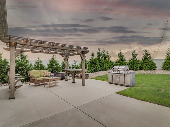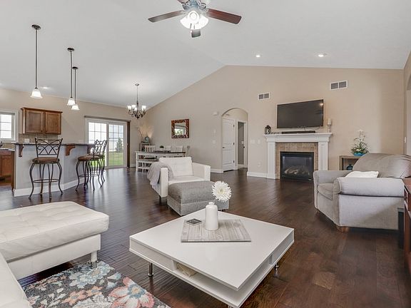 Custom-built ranch in PRIME East Side location! This stunning one-of-a-kind open floor plan SHOWS LIKE A MODEL and offers SO MANY EXTRAS! HUGE Fenced yard? CHECK! Finished basement? CHECK! Heated oversized 3-car garage w/ a drain? CHECK! Hardwood throughout the open & vaulted main living areas, which includes a large family room, dining area & chef's kitchen w/ granite tops, ample custom cabinetry, a tiered island & stainless appliances! 5 spacious bedrooms, including a master w/ trey ceiling, WIC & en suite bath featuring a soaker, separate shower & double vanity! Finished basement includes a GIGANTIC family room, 2 bedrooms & a full bath! Offering one of the LARGEST lots in the subdivision- complete w/ professional landscaping, patio, bar/pergola area... AND a 6' privacy fence! Unique foyer design w/ custom cubbies! 1st floor laundry! Subdivision includes 3 lakes & trails! A must see home with SO MANY CUSTOM EXTRAS! PRICED TO SELL!