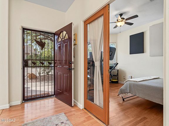 Santa Fe-style 3 bed / 2 bath in Crest Ranch with open layout, cozy fireplace, versatile 3rd bedroom with French doors--ideal as an office, yoga studio, or den. The bright eat-in kitchen boasts stainless appliances, double-oven, white cabinets and matching fridge, pantry and a breakfast bar. The private main suite features backyard access and a spa-like bath with dual vanities, garden tub, step-in shower, and walk-in closet. The low-maintenance yard offers turf with extensive paver hardscaping, a covered patio, and a raised garden/flower bed planter--perfect for entertaining or relaxing. Private community amenities include a sparkling pool, guest parking, and 24-hr video surveillance. Prime location near UArizona, Banner Medical, The Loop, Trader Joe's, St. Philip's Plaza, and La Encantada. Enjoy the best of Tucson living in Crest Ranch, a sought-after enclave known for its quiet streets, well-maintained common areas, and unbeatable convenience. With easy access to I-10 and downtown, you're minutes from UArizona events, medical campuses, shopping, dining, and the Rillito River Path for biking, walking, and outdoor recreation. Homes in this community rarely come available. Don't miss the chance to own a move-in-ready property that blends Santa Fe charm with modern comfort in one of central Tucson's most desirable neighborhoods.